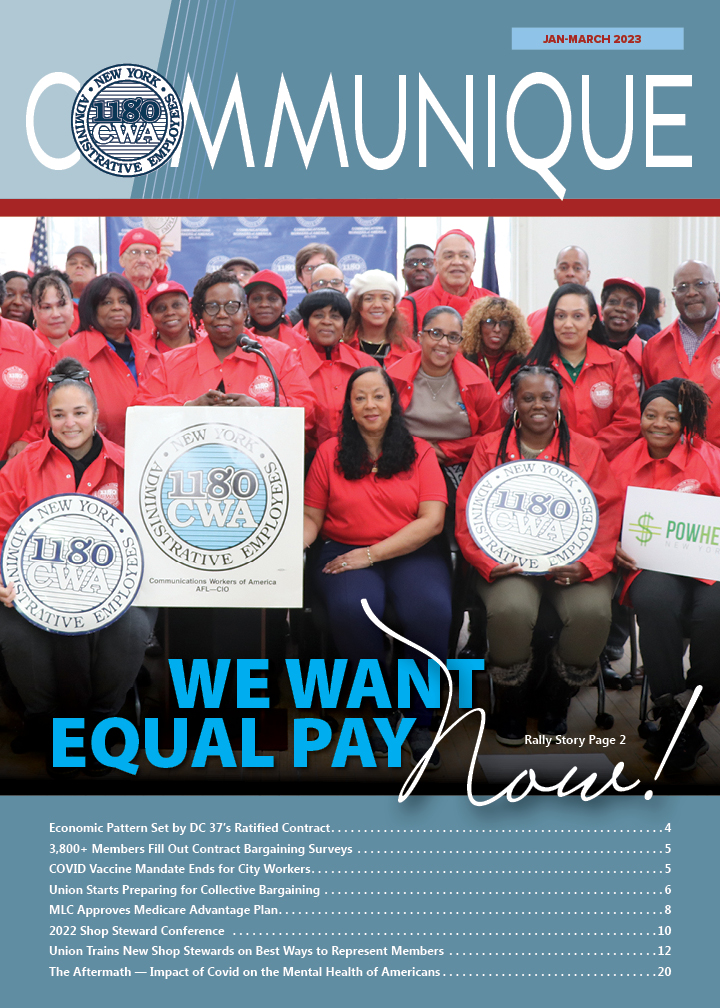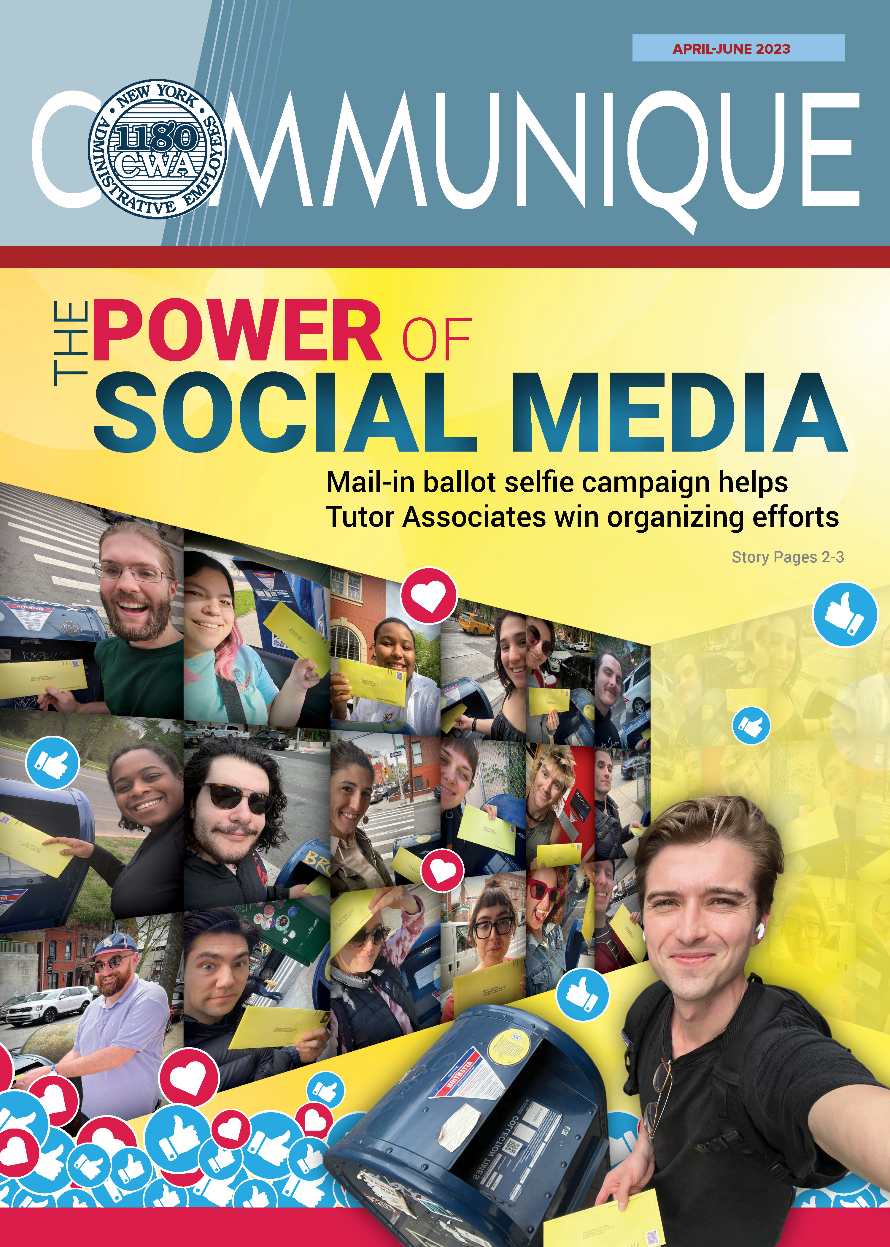 CWA Local 1180’s quarterly magazine, the Communique, has consistently garnered top awards in the Metro New York Labor Communications Council and the International Labor Communications Association contests. Competing against some of the country's best labor publications, the Communique repeatedly stands out in categories for both writing and graphic design, while Local 1180's outreach campaigns and social media programs take the highest of honors.